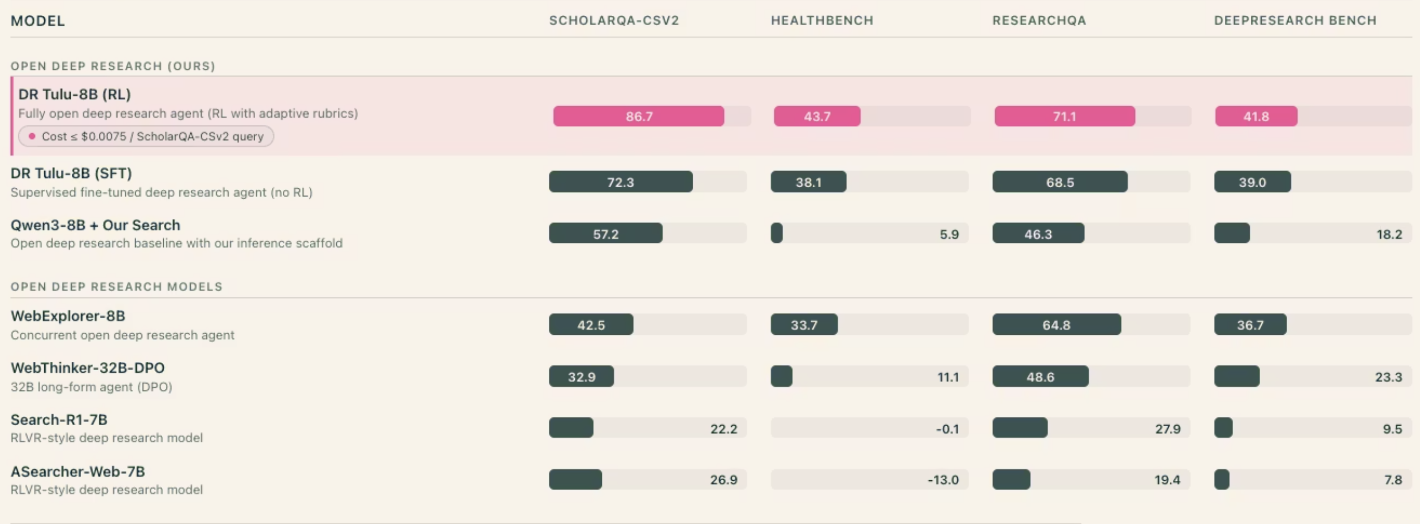 Fig 1. Open deep research model list observed from DR Tulu web annoucement page. Learn more